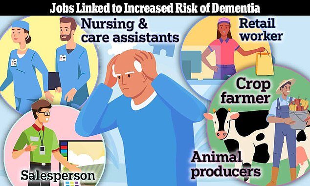یک مطالعه دیگر نشان میدهد که طیف گستردهای از مشاغل، از کشاورزی گرفته تا تدریس، ممکن است ریسک فاکتور بالقوهای برای مشکلات مغزی مانند بیماری آلزایمر باشند. طی یک بررسی که روی بیش از ۲.۶ میلیون پرونده مرگ از ۲۲ ایالت طی سالهای ۱۹۹۲ تا ۱۹۹۸ امریکا صورت گرفت، محققان دریافتند که مشاغل گوناگون با افزایش خطر مرگ ناشی از انواع مختلفی از انحطاط مغزی، مانند بیماری آلزایمر و زوال عقل زودرس، مرتبط هستند.