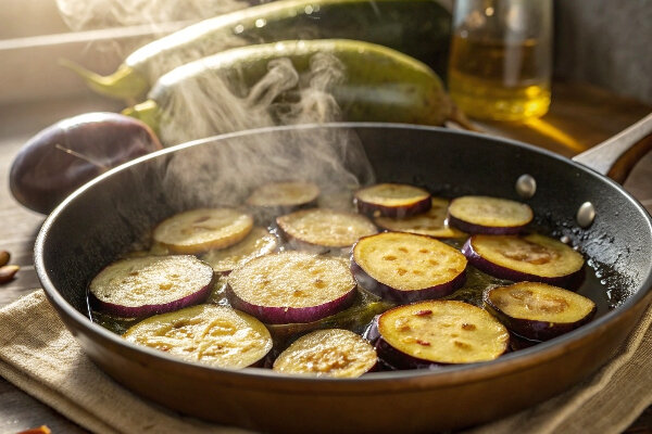 حالا سیب زمینی و بادمجان را به صورت حلقه خرد کرده و آن درون ظرف جداگانه و در داخل روغن داغ سرخ کنید. پس از این کار، سیب زمینی و بادمجان را درون ظرفی دیگر ریخته و دو پیاز باقی مانده را پس از خردکردن به صورت حلقهای، سرخ کنید.
